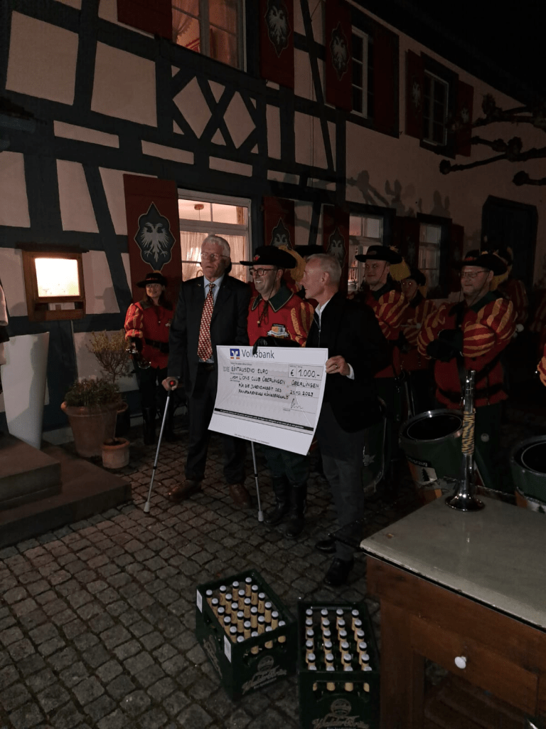 Der Lions Club überreichte dem Fanfarenzug Königseggwald anlässlich der Jumelage mit dem Französischem Partnerclub aus Beaugency einen Scheck in Höhe von 1.000.-€ für die Jugendarbeit.